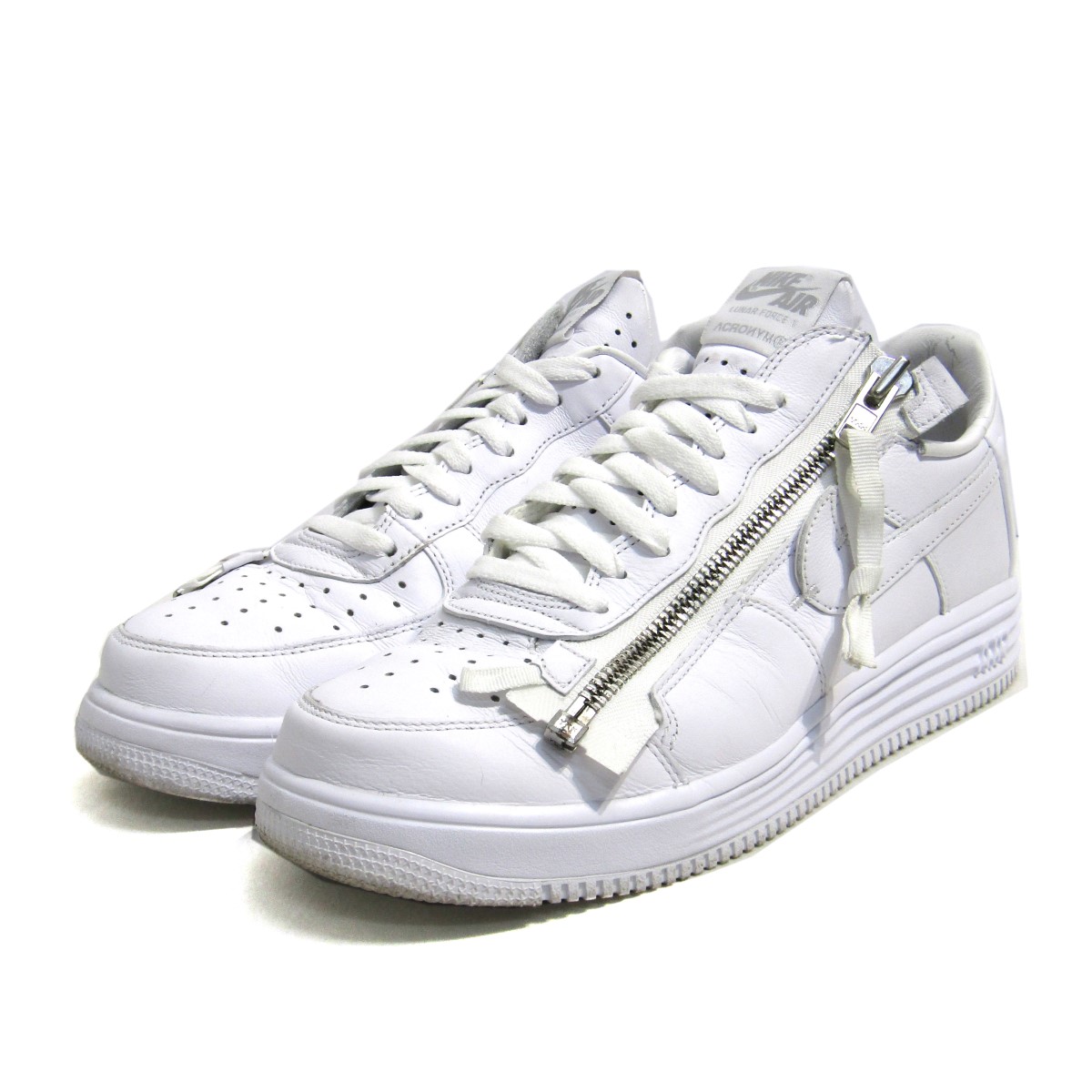 ナイキ×アクロニウムのLUNAR FORCE 1 ’17 ルナフォース ワン スニーカーです。AIR FORCE 1の誕生から35周年を記念したAF-100コレクションの1つとして発売されたモデルです。シューレースをほどかず簡単に着脱できるサイドジッパーが魅力です。