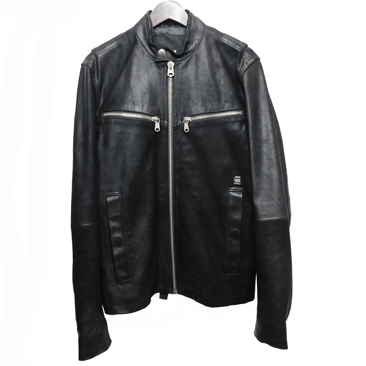 ジースター・ロウの「MOWERMER LEATHER JACKET」 レザーライダースジャケットです。G-STAR RAWは1989年にスタートしたオランダのデニムブランドです。こちらはカウレザーにコーティングがされており光沢感がございます。