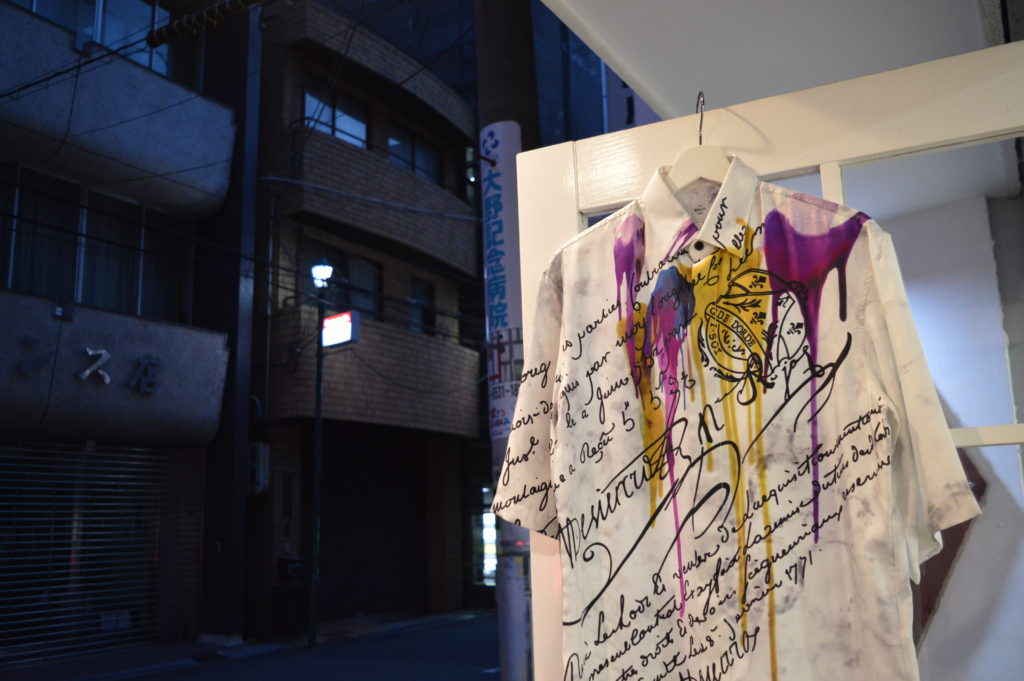 ペンキを垂らしたような一枚で様になる印象的な一着。
