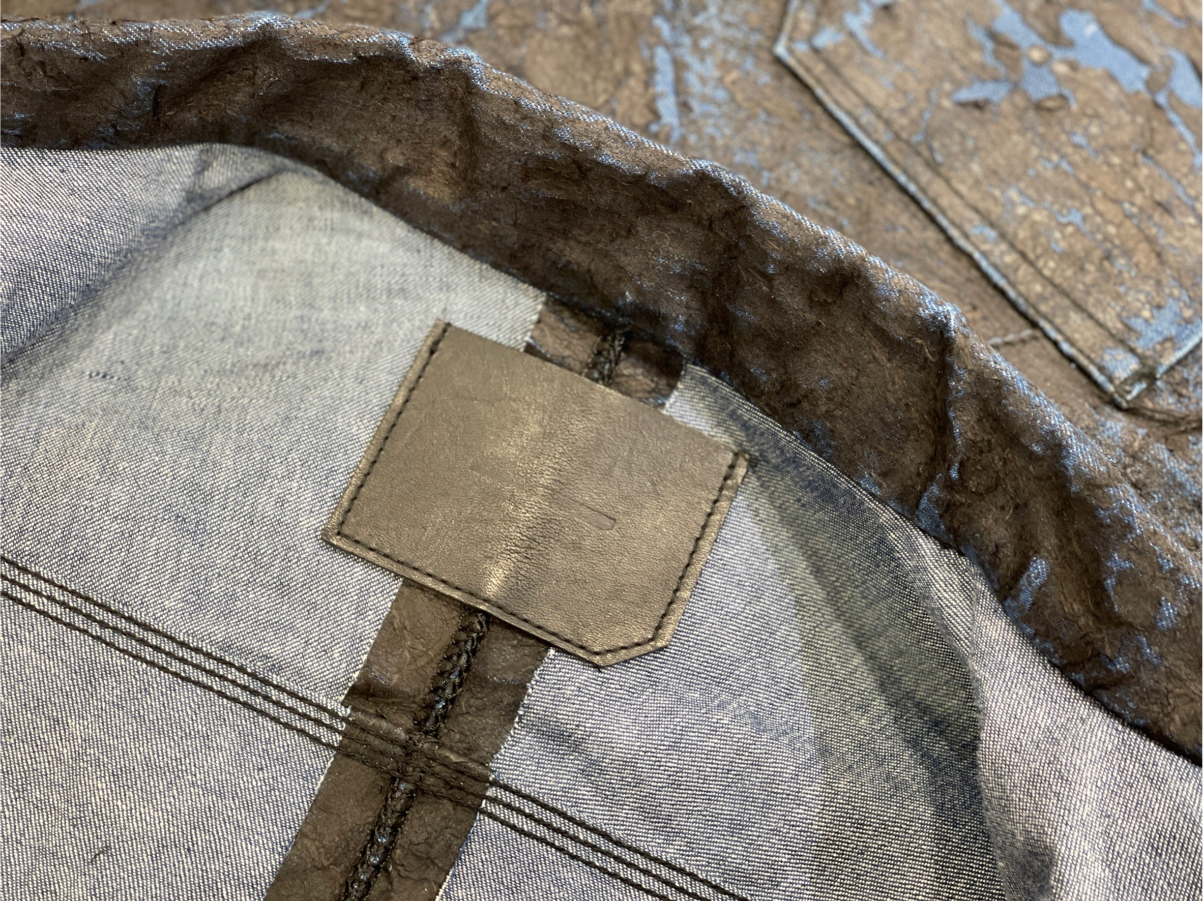 デニムを和紙で加工した唯一無二のテキスタイルで構成されたデニムジャケットからは、和洋服の要素を感じられます。