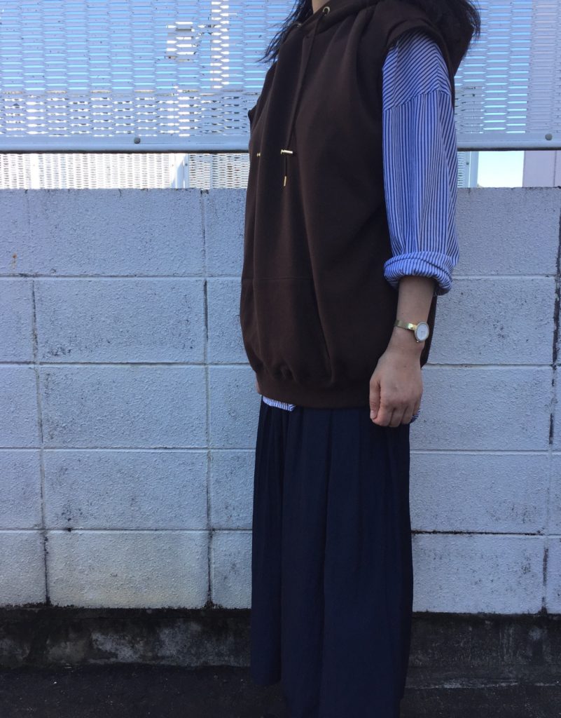 カットソーやブラウスと合わせるだけで、流行りのレイヤードスタイルが完成し、一気にオシャレに仕上がります。