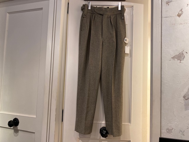 英国FOX BROTHERS社の生地を使用したテーパードパンツ。ベージュの落ち着きのあるトーンに粗粗しさが独特の質感を生み出す織柄が程よく個性的で、単色よりも中庸的なトーンになるため、他アイテムの色柄とも馴染ませやすさが魅力です。定価も高価なアイテムかつ品のある生地感シルエットが絶大な支持を受けています!こちらも高価買取に期待できるアイテムです!