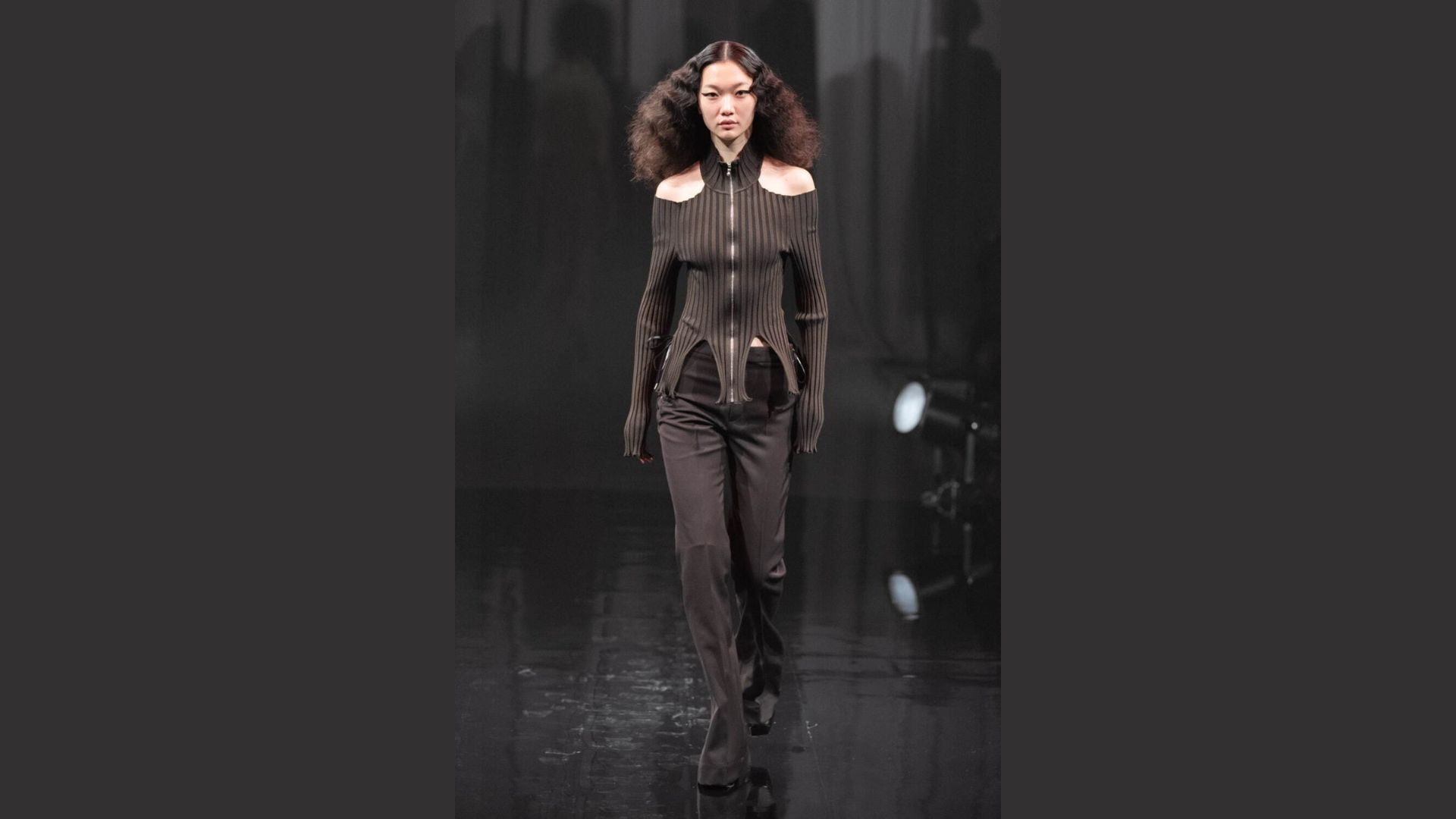 肌の露出に緊張感と知性を与え、視線を計算されたバランスで導きます。