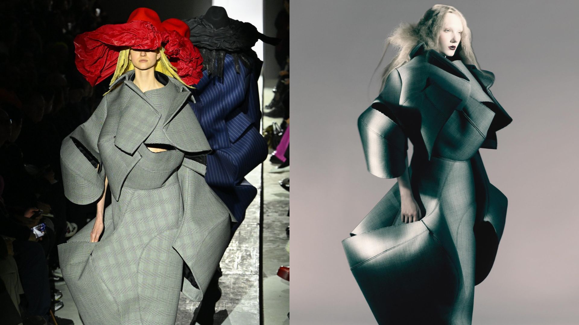 今季のコムデギャルソンそして川久保玲が今伝えたい思想を象徴する存在です。