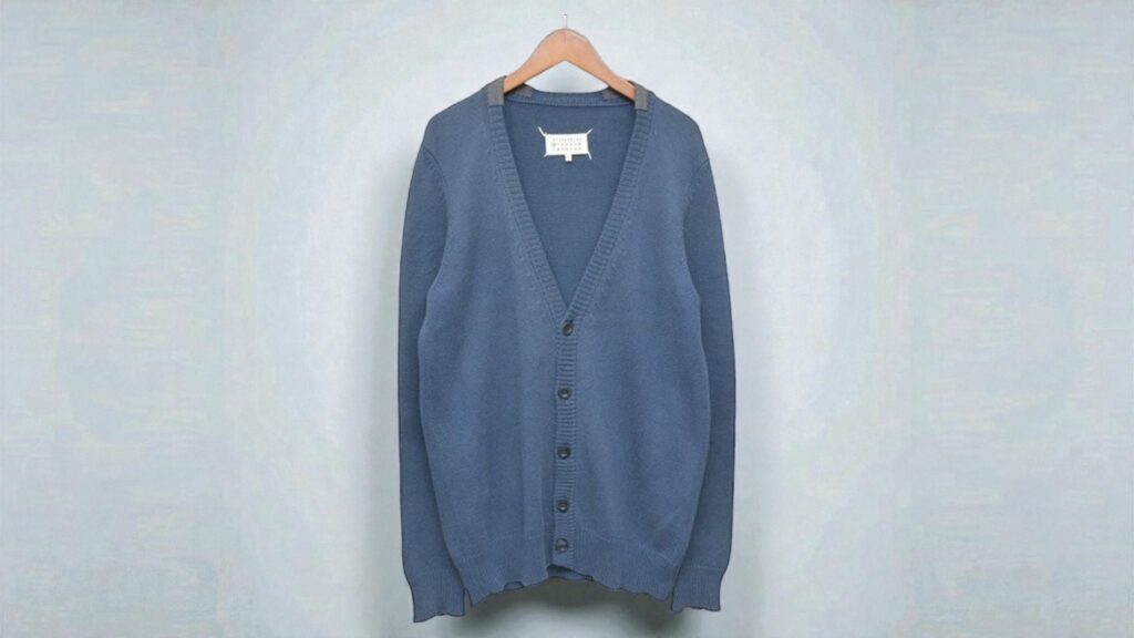 シルエットは極めてベーシックでありながら、肘に配されたパッチが視線を集め、静かな違和感を生み出します。この控えめで知的な主張こそ、メゾンマルジェラの真骨頂です。
