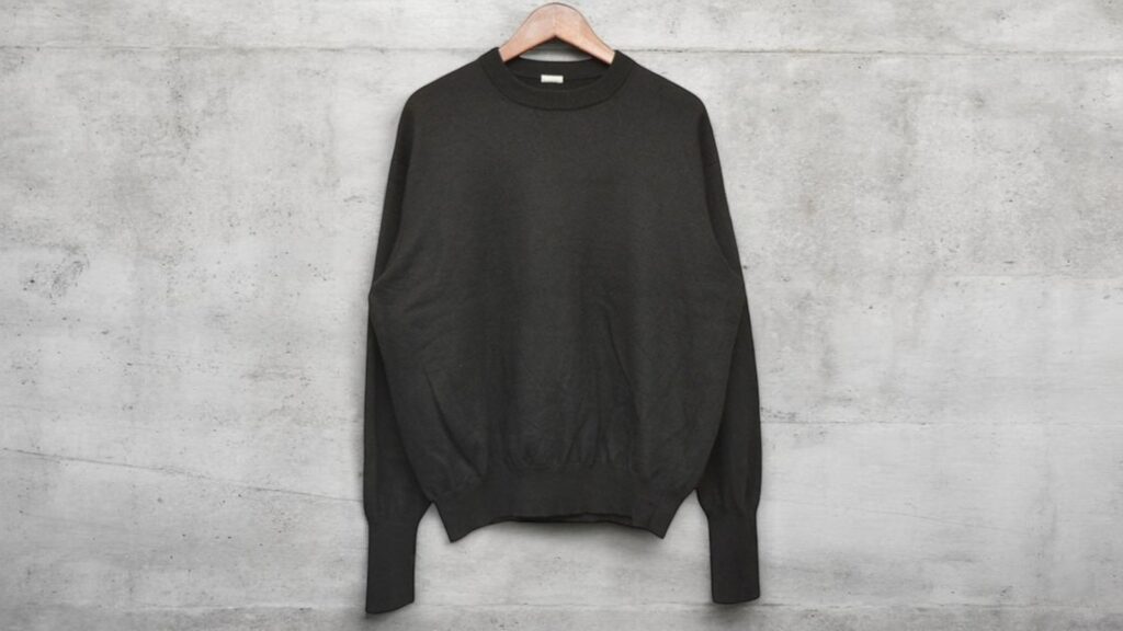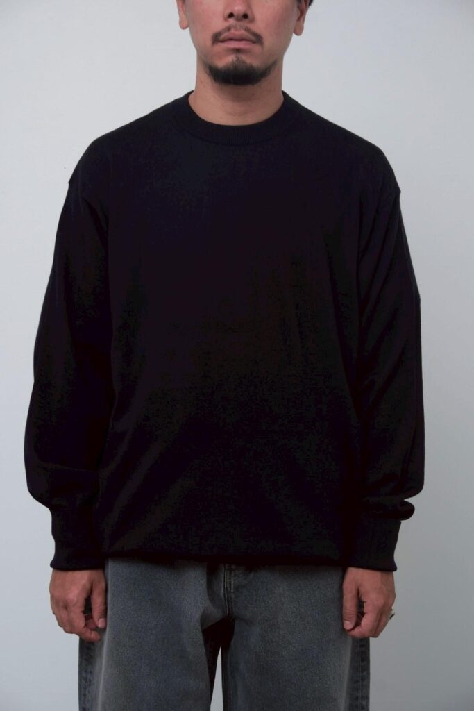 一見ミニマルなクルーネックニットでありながら、その設計思想と素材使いには緻密なこだわりが凝縮されています。