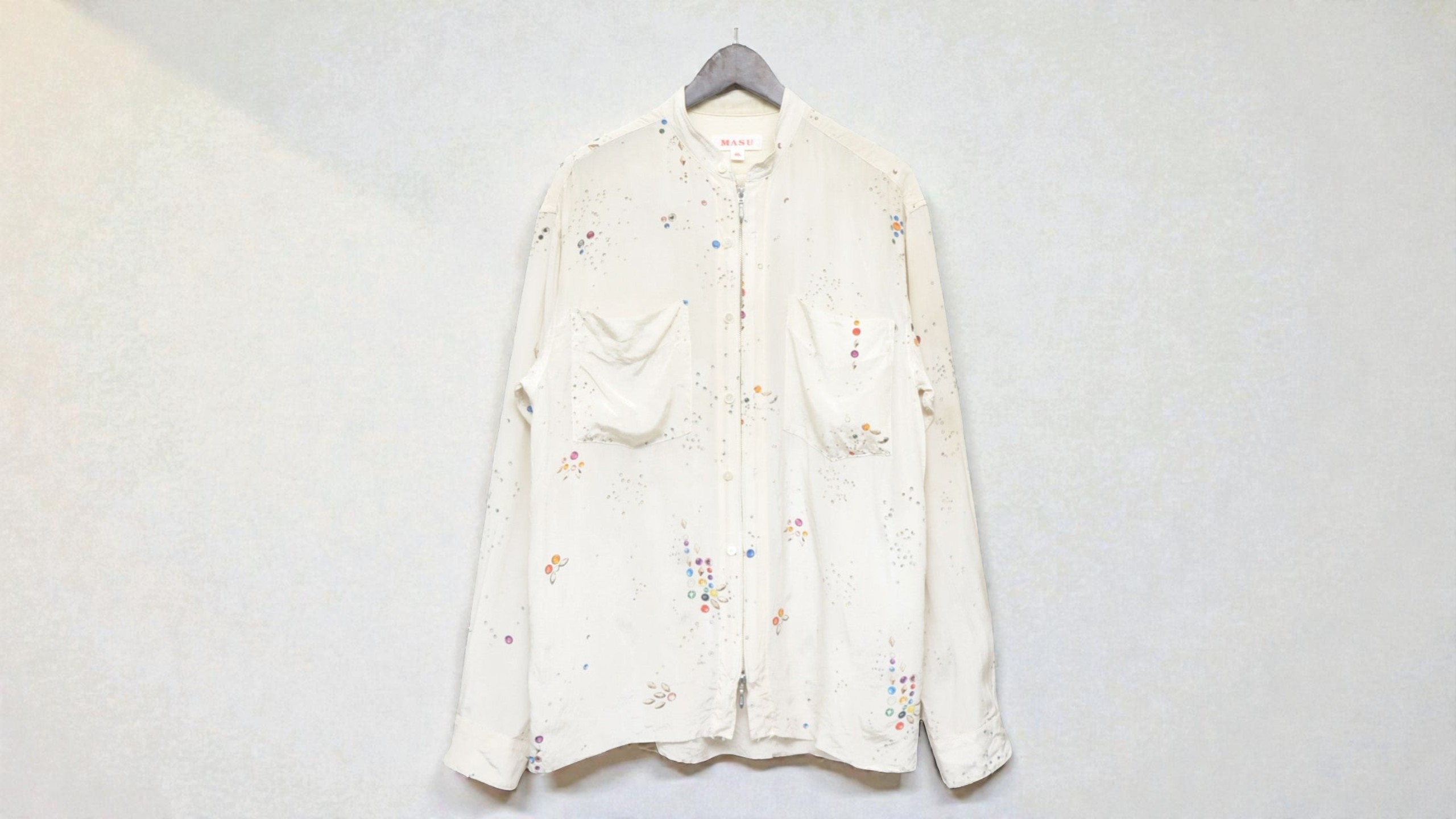 このアイテムはMASUがシグネチャーとして展開するファスナー開きのシルクシャツを、