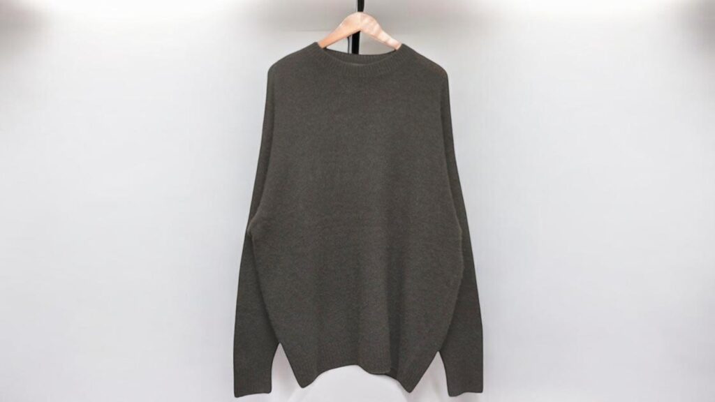どこか懐かしさを感じさせながらも、従来のカシミヤニットとは異なる空気を持つ一枚。
