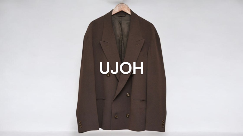 構築的でありながらもどこかラフに羽織れるバランスは、UJOHらしいパターンワークの妙と言えるでしょう。