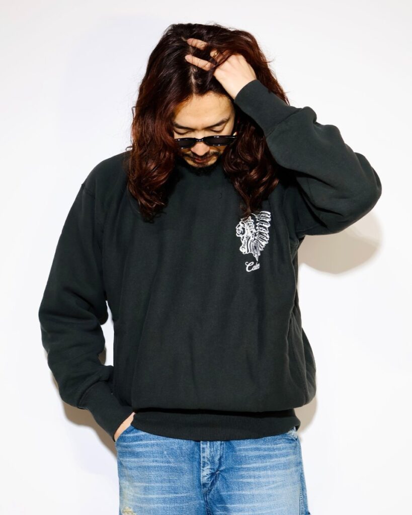 左胸のプリントは控えめながらも存在感があり、全体のバランスを引き締めています。ヴィンテージの再解釈と現代技術の融合。