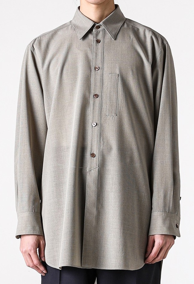 前立てに施された切り替えは、プルオーバーのようなニュアンスを加え、シンプルな中にさりげない個性を演出。