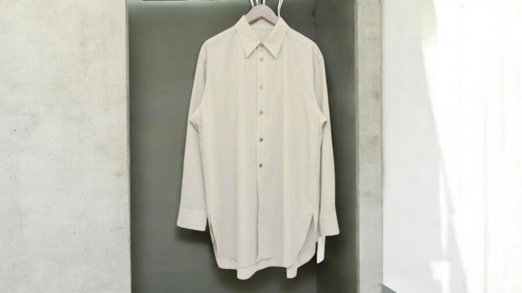 着丈を長めに設定することで、シャツとしてだけでなく軽い羽織りとしても機能します。