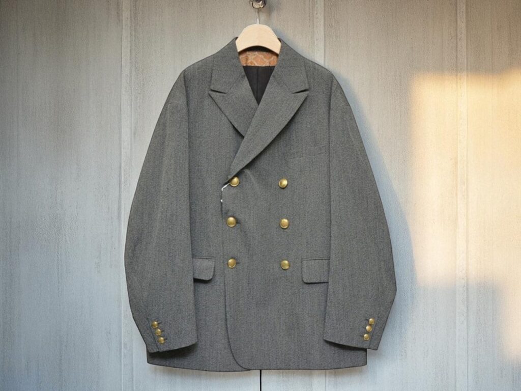 デザインはダブルブレスト仕様で、重厚感とフォーマルさを演出しつつも、