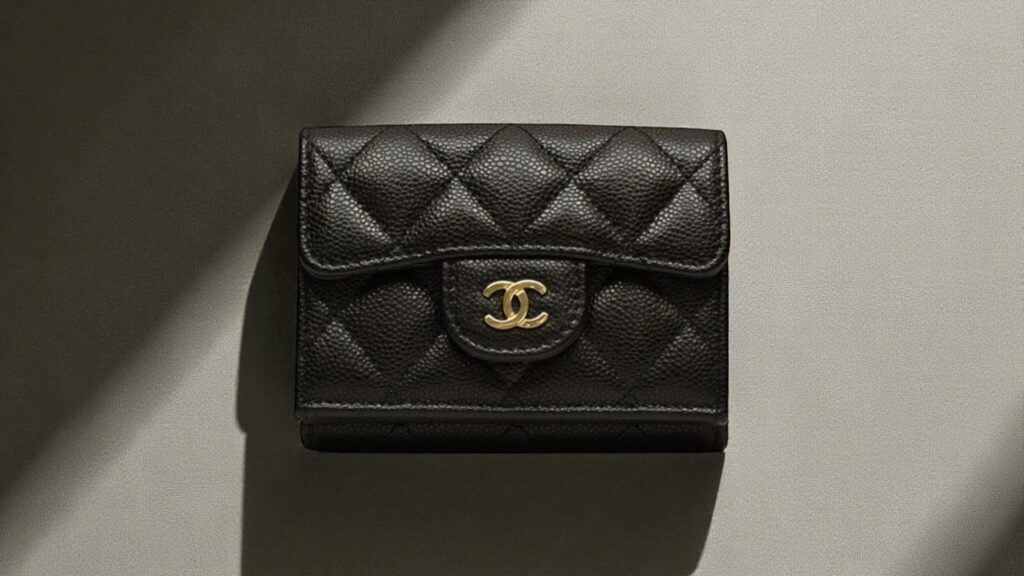 手に取った瞬間、そのしっとりとした質感と確かな存在感に心を奪われます。フロントには、メゾンを象徴するCCマークが上品に輝き、