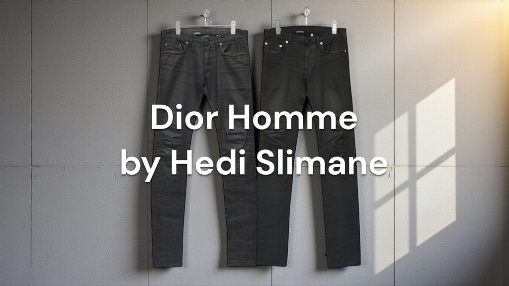 まさにスリマンらしい二面性の象徴です。現在、アーカイブ市場ではこの時代のDIOR HOMMEデニムが再評価の波にあります。