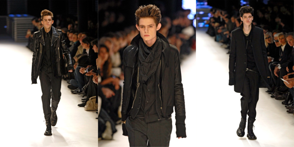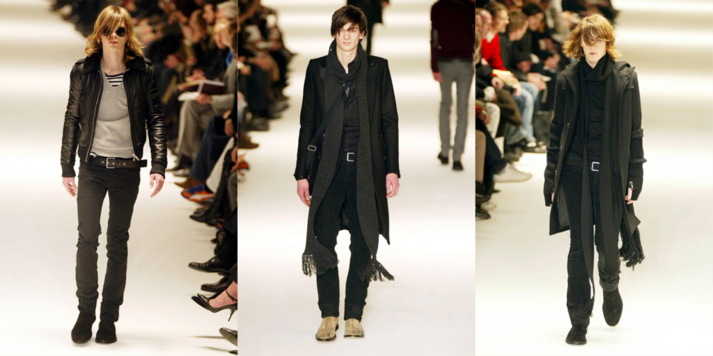 ファッションと音楽が再び密接に結びついた瞬間だったと言えるでしょう。スリマヌのディオール オムは、黒を基調としたミニマルでストイックな世界観が特徴です。