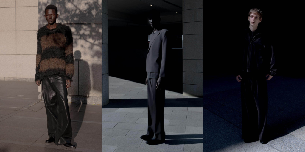 シルエットの操作によって独自の存在感を放っています。