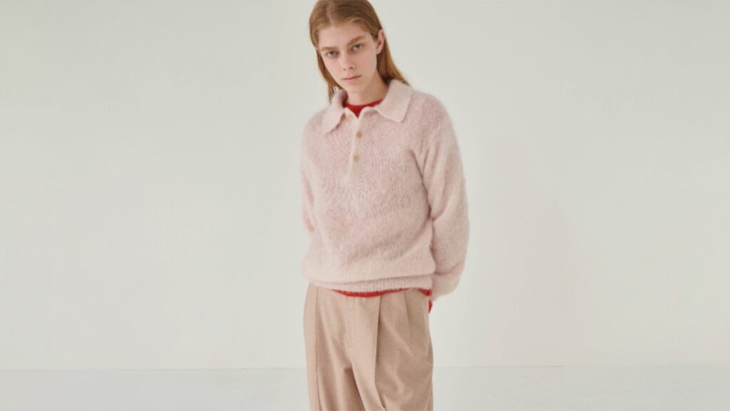 使用されているのは、南アフリカ産スーパーキッドモヘアと上質なウールをブレンドした糸。