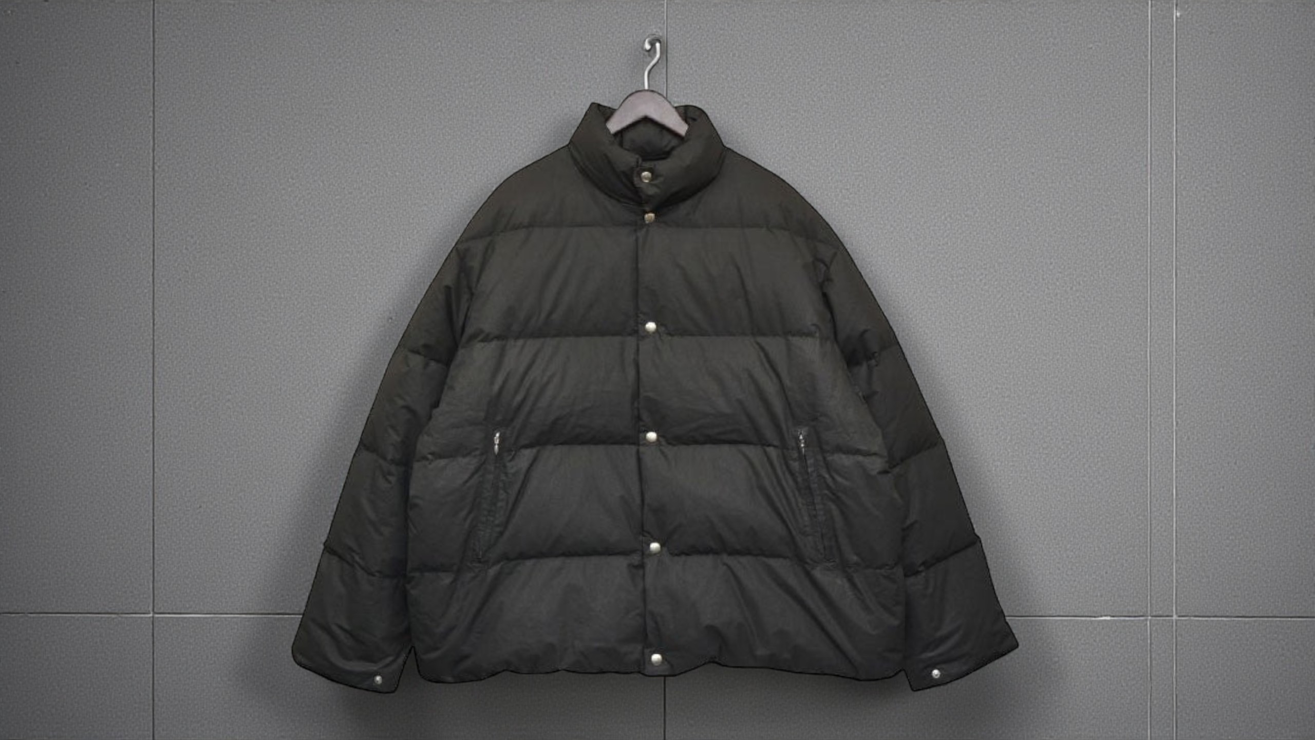 この“曖昧さを許容する素材感”こそ、COMOLIの真骨頂と言えるでしょう。シルエットはダウンでありながら膨らみすぎず、