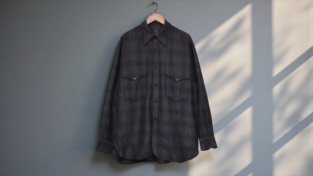 同ブランドらしいバランス感が光る一着です。シルエット自体はこれまでのワークシャツの系譜を踏襲しながらも、
