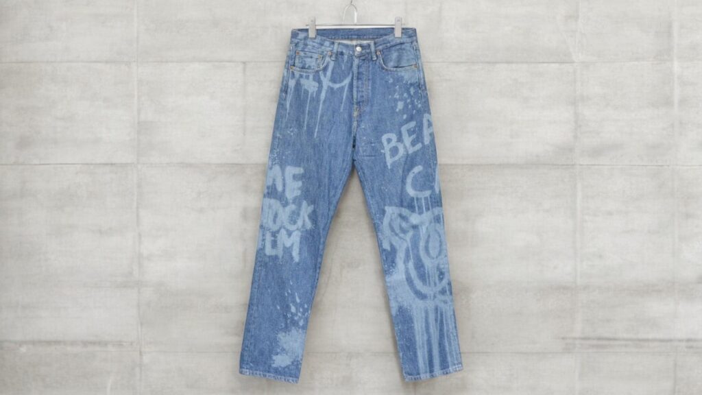 強い視覚的ノイズを与えることで成立した一本です。最大の特徴は、大胆なブリーチ加工によって描かれるグラフィック表現にあります。