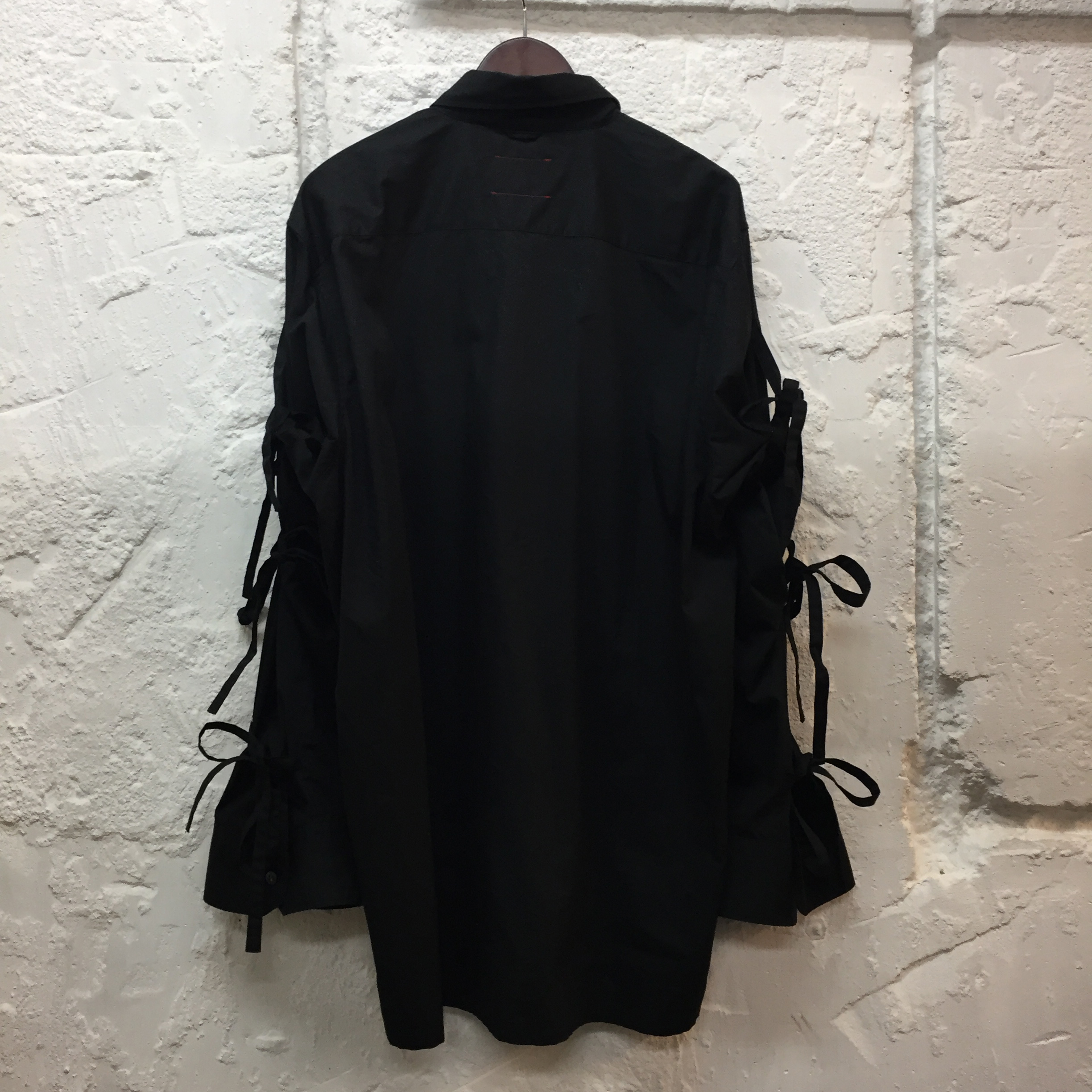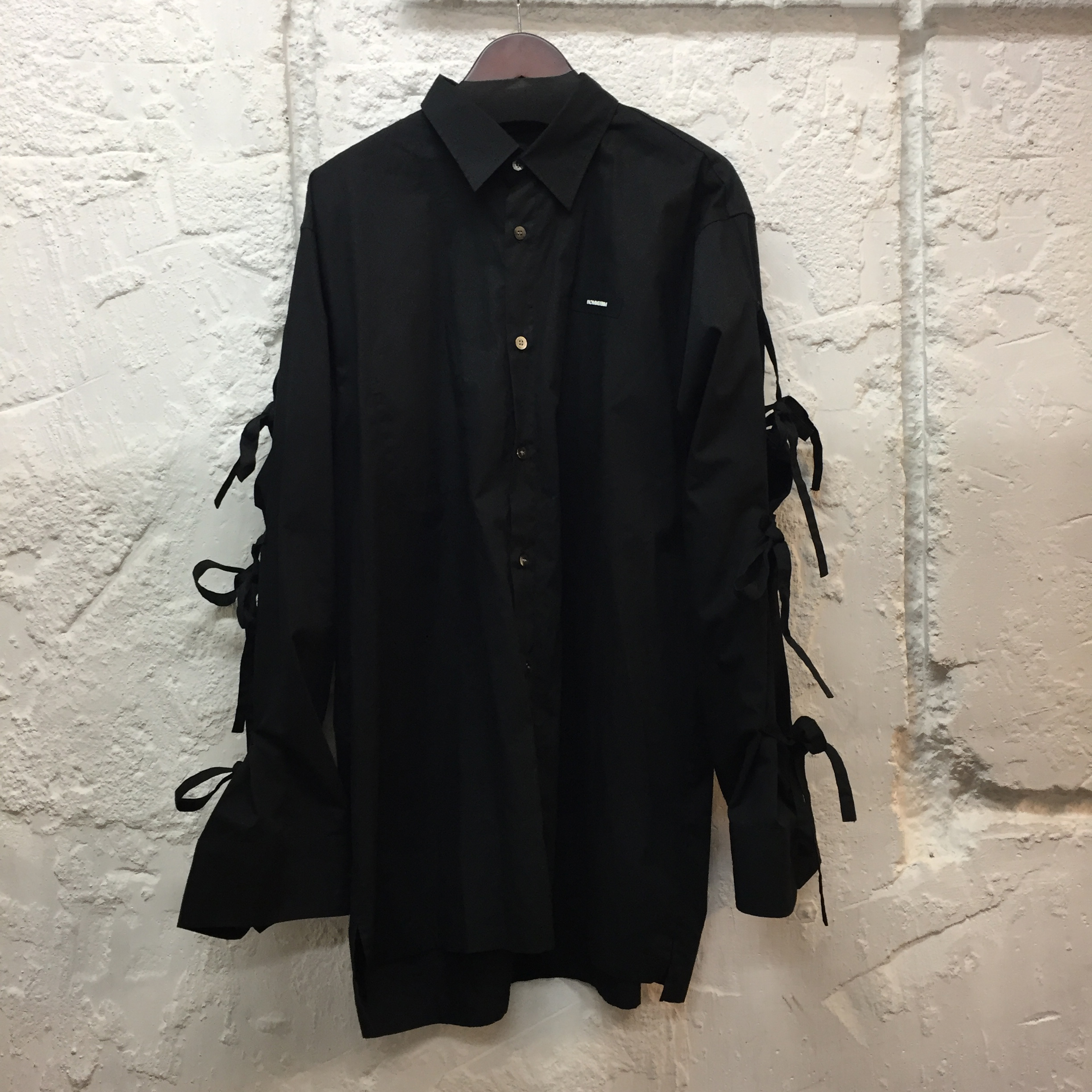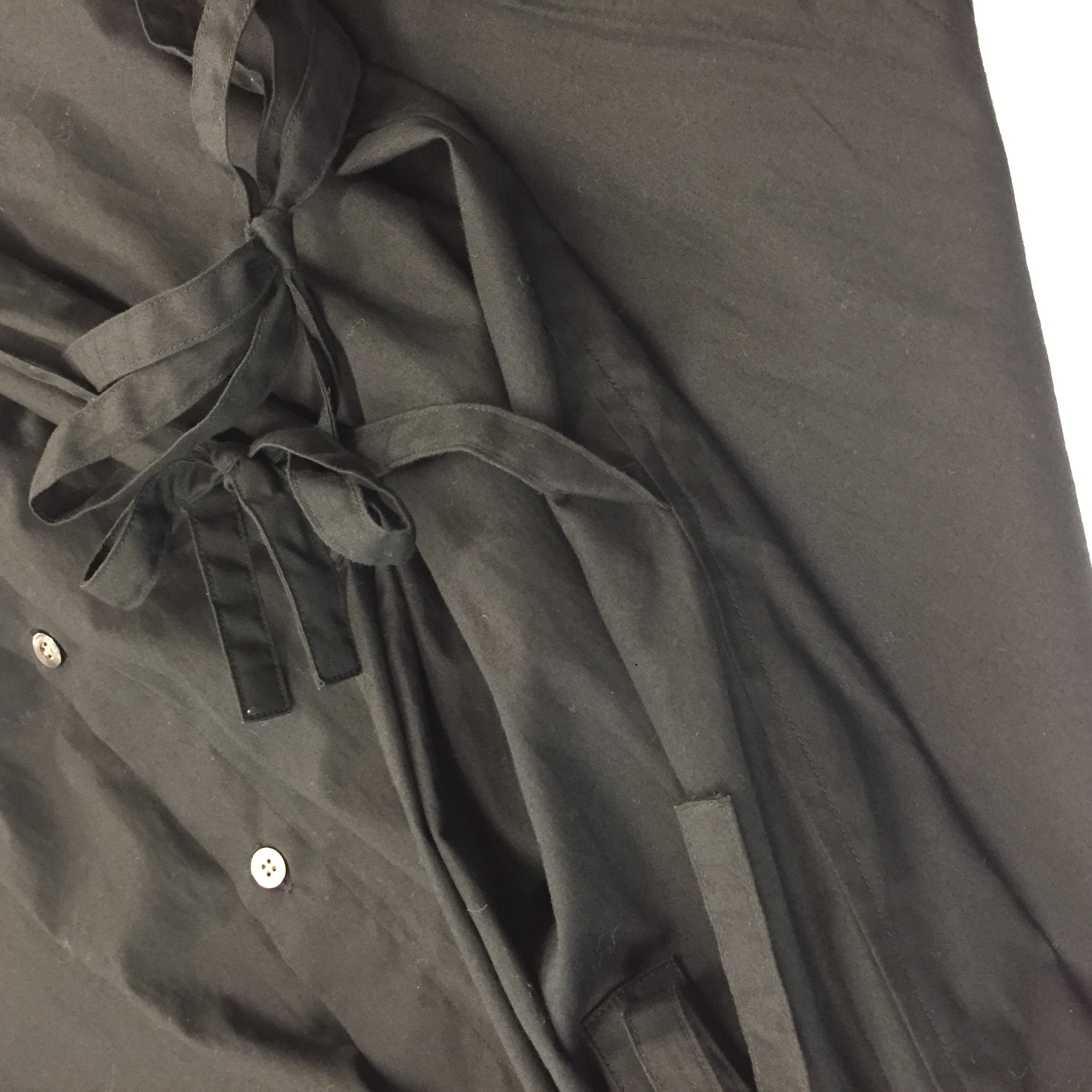 FEMMは女性向けには制作していないため、このような表記になっているのですが、こちらのシャツはドローコードが付いていて腕周りを調節できるため、袖先をフレアにして中性的な着こなしができます。また蝶々結びをするとリボンのようで可愛いです。そしてミリタリーにも合うのは強み!!