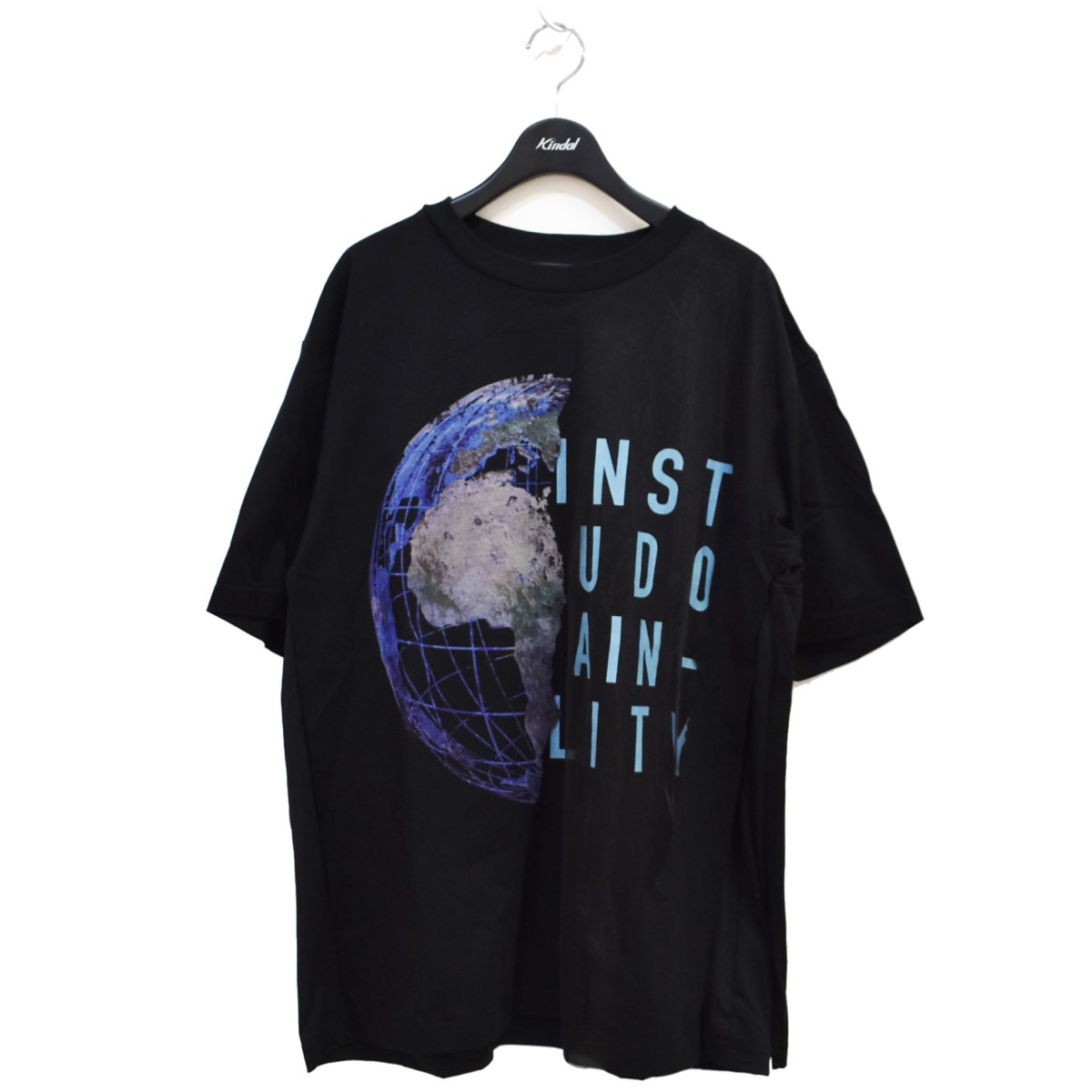 メッセージTシャツの上から薄手の透け感のある生地を組み合わせた2重仕立てのレイヤードTシャツ。地球の半分、そこから覗く文字には「AGAINST PSEUDO SUSTAINABILITY」と記載されており、「今起きている地球の現状は?」と問いかけたメッセージが掛け合わされています。透け感のある生地にはコットンとポリエステルを用いており、特殊な溶剤をかけることによりコットンのみを溶かしメッシュに仕上げています。