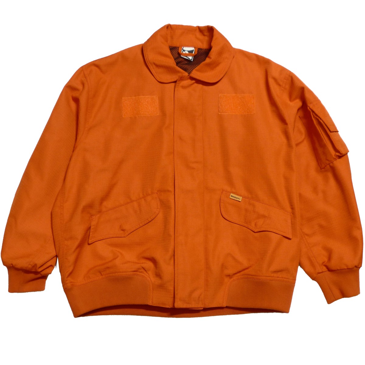 ぱきっとしたオレンジが特徴的なGR10K/ジーアールテンケーのNOMEX FLIGH JACKETです。身幅が少し広めに作られてますが、丈が短くウエストゴムもしっかりしているので綺麗なシルエットになっています。