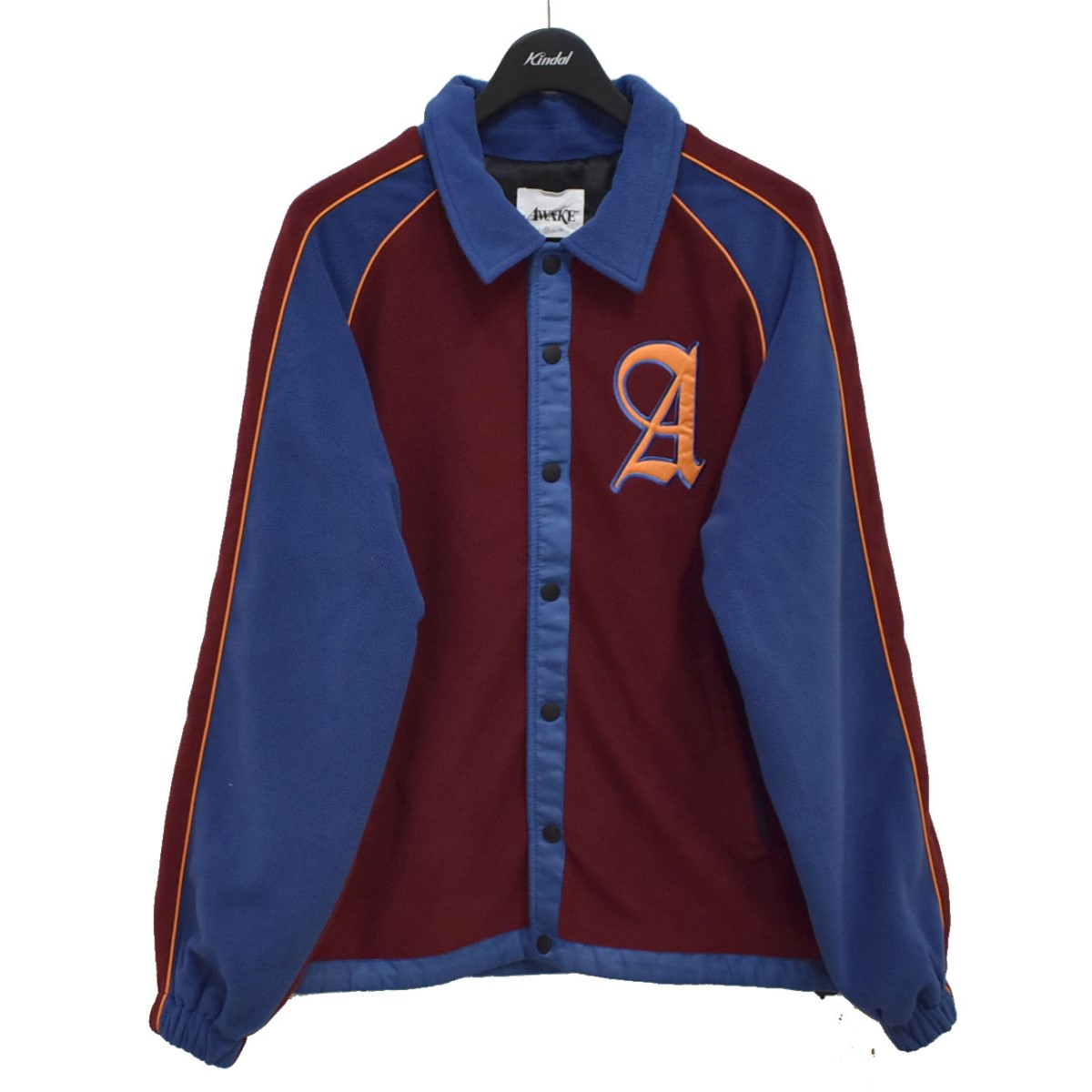 オールドイングリッシュのエンブレムを前身頃に配した、フリース素材のベースボールジャケットです。裾の切り替え部分はナイロン生地となっており、裏にはストラップが付いている為シルエットを変えることも可能です。秋冬物も高くお買い取り致します!